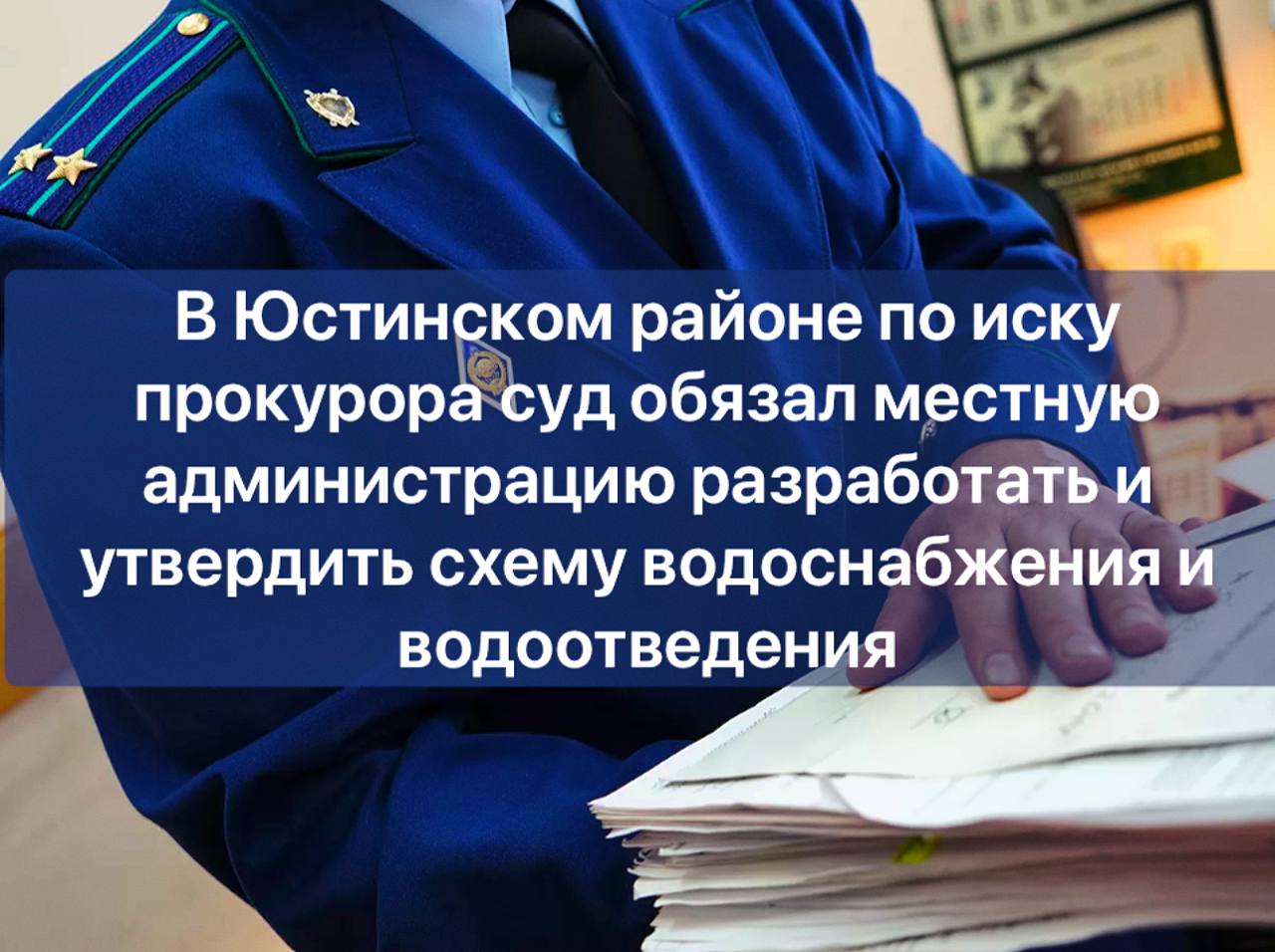 Поскольку бездействие органа местного самоуправления нарушало права граждан на получение услуг водоснабжения и водоотведения надлежащего качества, прокурор обратился в суд с административным исковым заявлением о возложении на администрацию Юстинского районного муниципального образования обязанности в течении 3 месяцев со дня вступления решения суда в законную силу разработать и утвердить схему водоснабжения и водоотведения района.