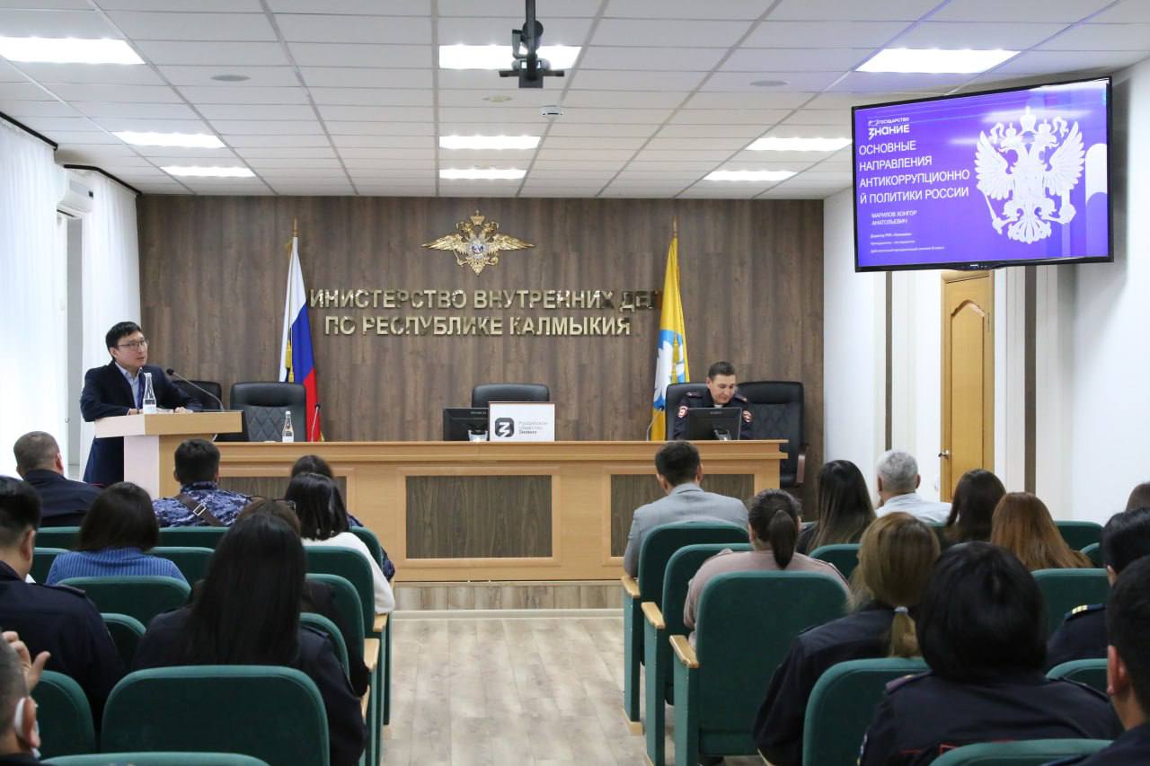 Сегодня в актовом зале МВД по Республике Калмыкия состоялось лекционное занятие представителей Российского общества «Знание».