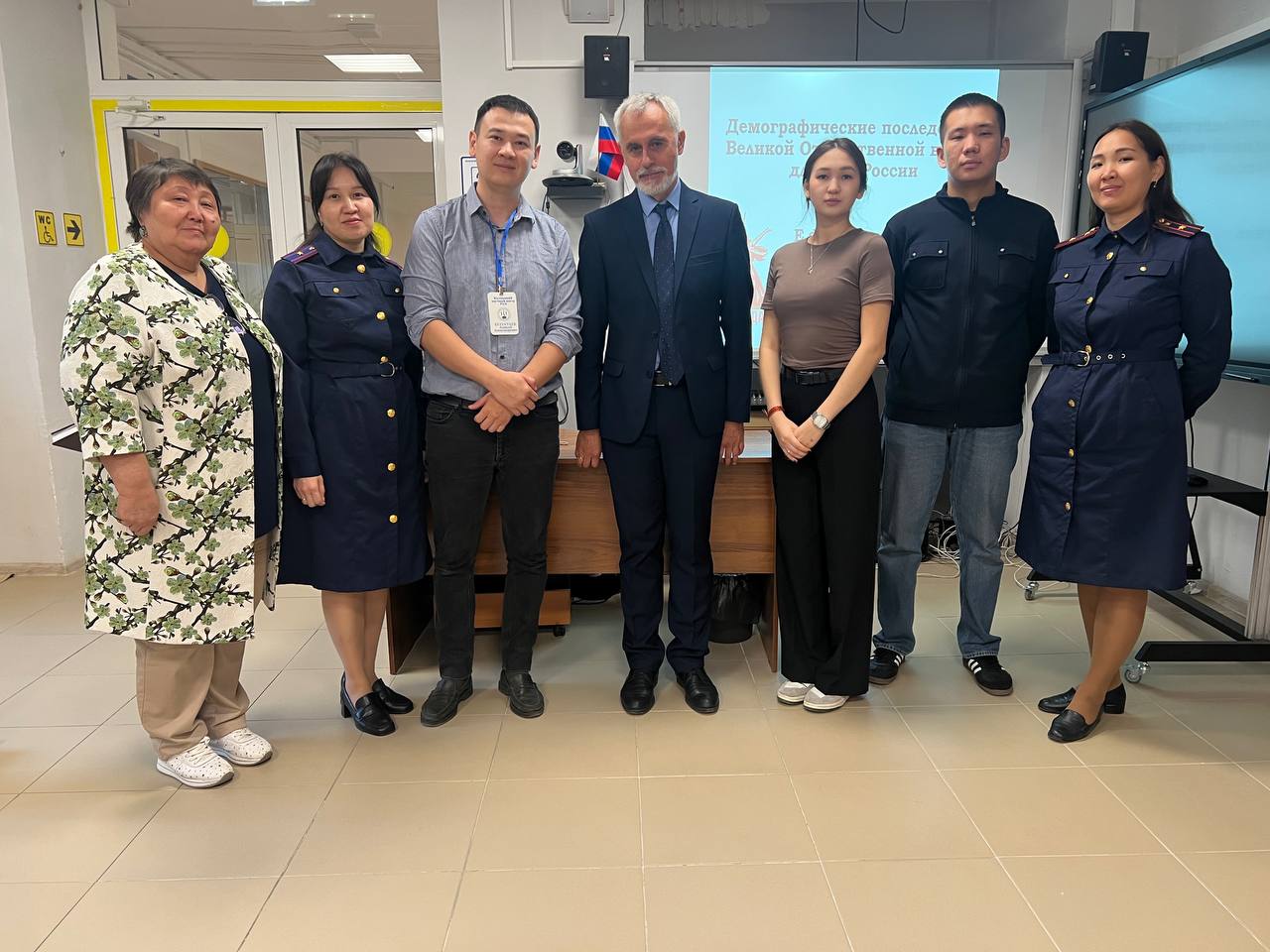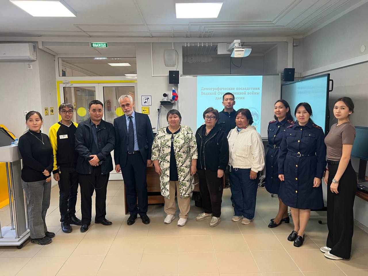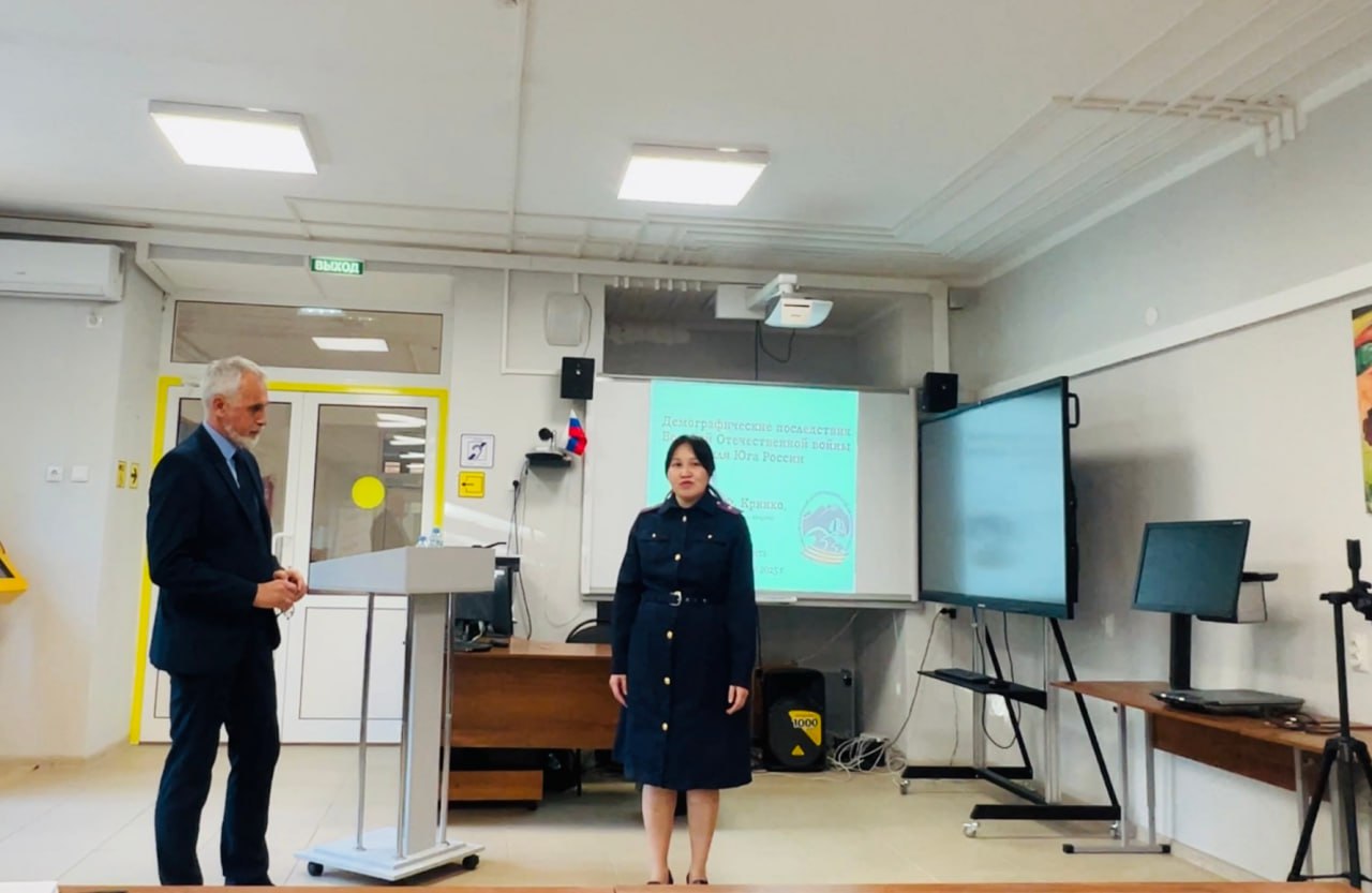 Ученый выступил перед аудиторией с докладом по теме «Демографические последствия Великой Отечественной войны для Юга России». В своей лекции Евгений Федорович осветил масштабы человеческих потерь, понесенные южными регионами России, и познакомил присутствующих с архивными данными.