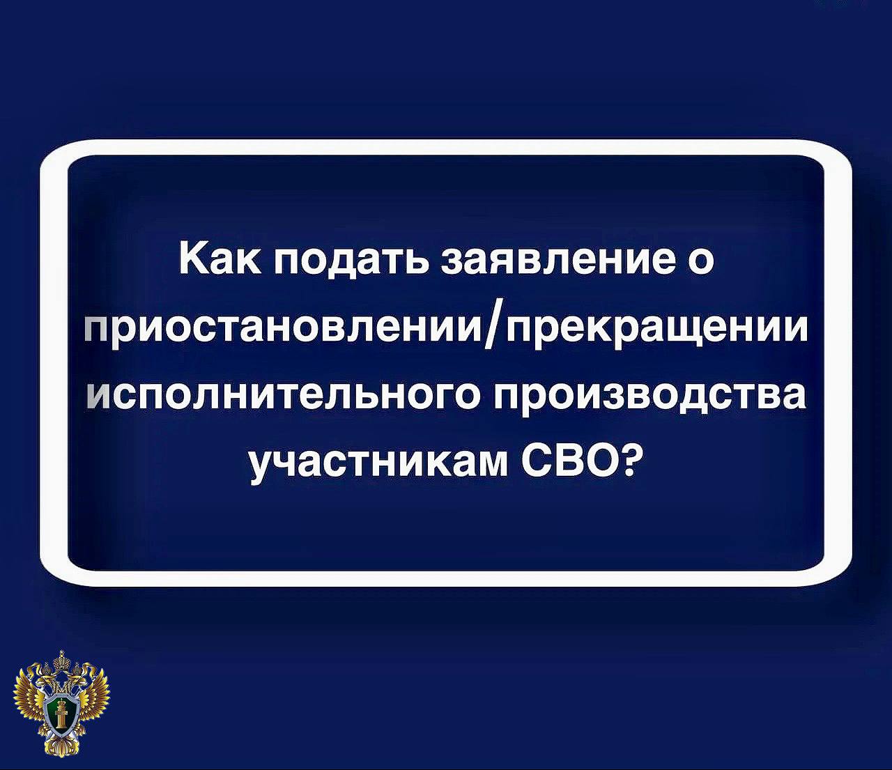 В случае возникновения вопросов о прекращении или приостановлении исполнительных производств в отношении участников СВО, а также других вопросов касающихся защиты прав и законных интересов участников СВО и членов их семей,