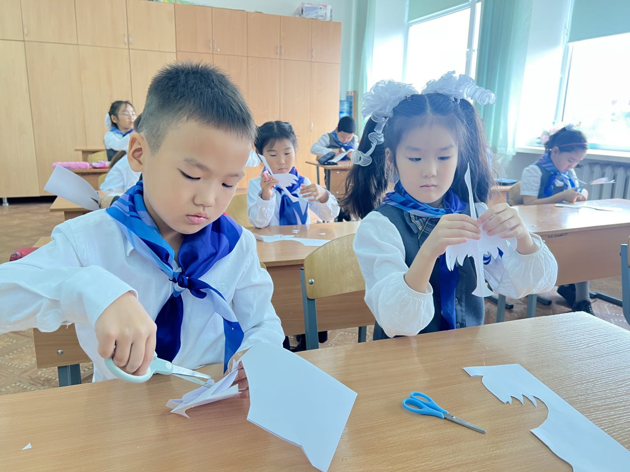 Ребята приняли в мероприятии самое активное участие. Вместе с представителем следственного управления они вырезали из бумаги белых журавлей и дружно исполнили песню «Катюша». Особенно трогательным стало выступление детей: первоклассник Алдар Басангов рассказал знаменитое стихотворение Расула Гамзатова «Журавли», а Матвей Кравцов рассказал о своем легендарном прадеде Юрии Константиновиче Клыкове – юном партизане, храбро сражавшемся с врагом и отважно погибшем в неравной схватке с фашистами. Аня Шурганова продекламировала собственное стихотворение «Журавли», написанное ею накануне встречи.