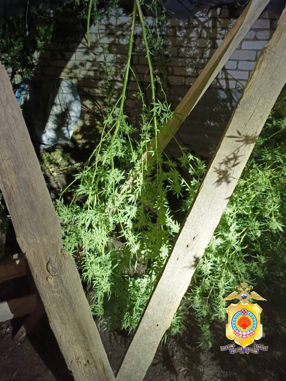 В ходе обследования домовладения подозреваемого полицейские обнаружили и изъяли 4 куста растений, имеющих специфический запах. Также в одной из комнат было найдено высушенное вещество растительного происхождения, разложенное на газете.
