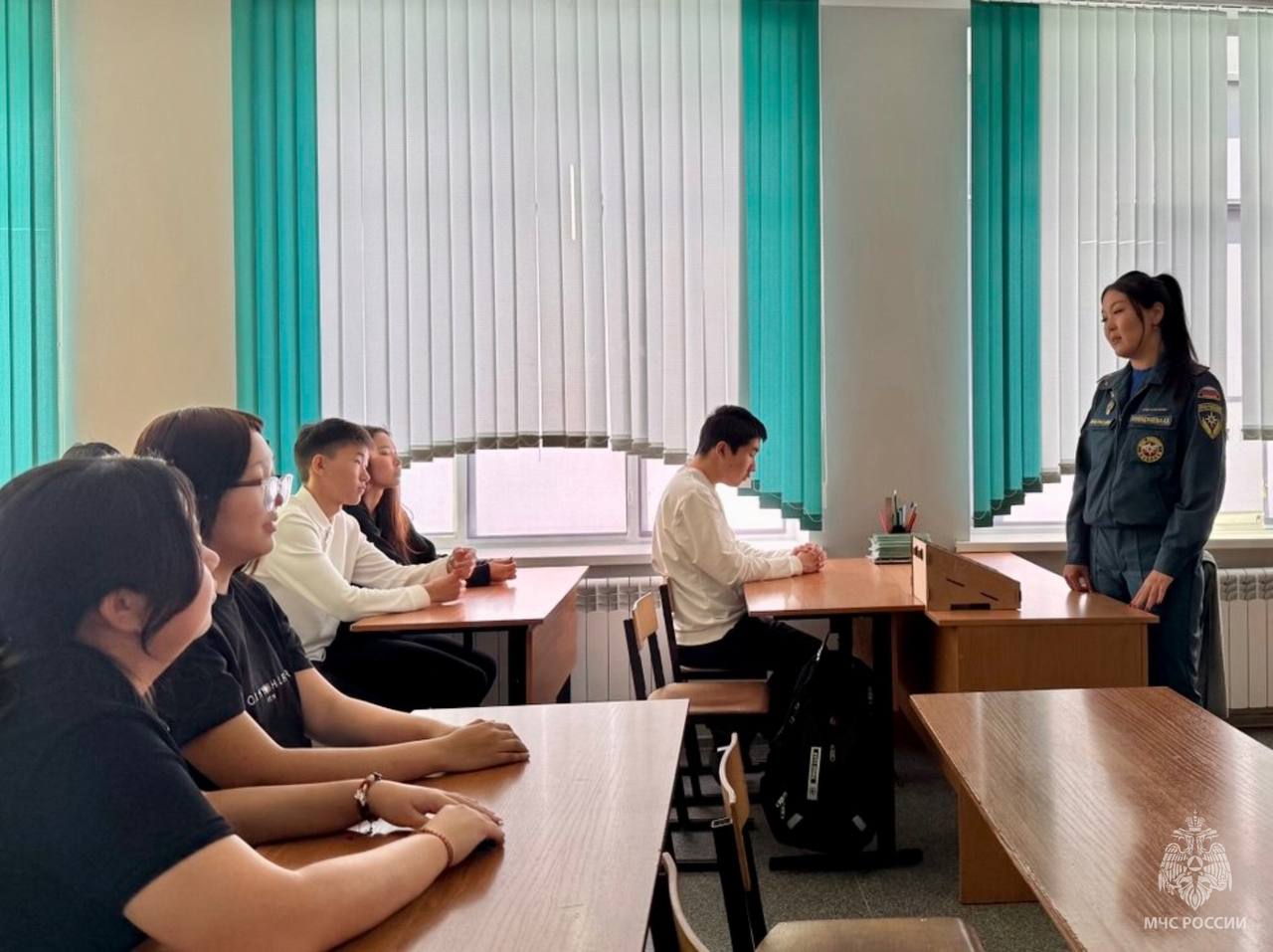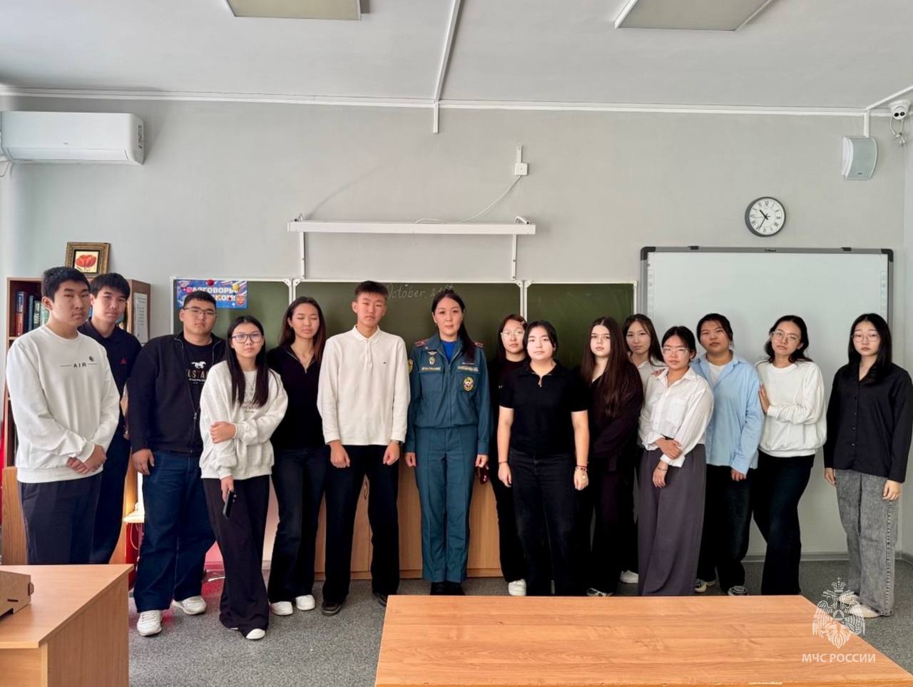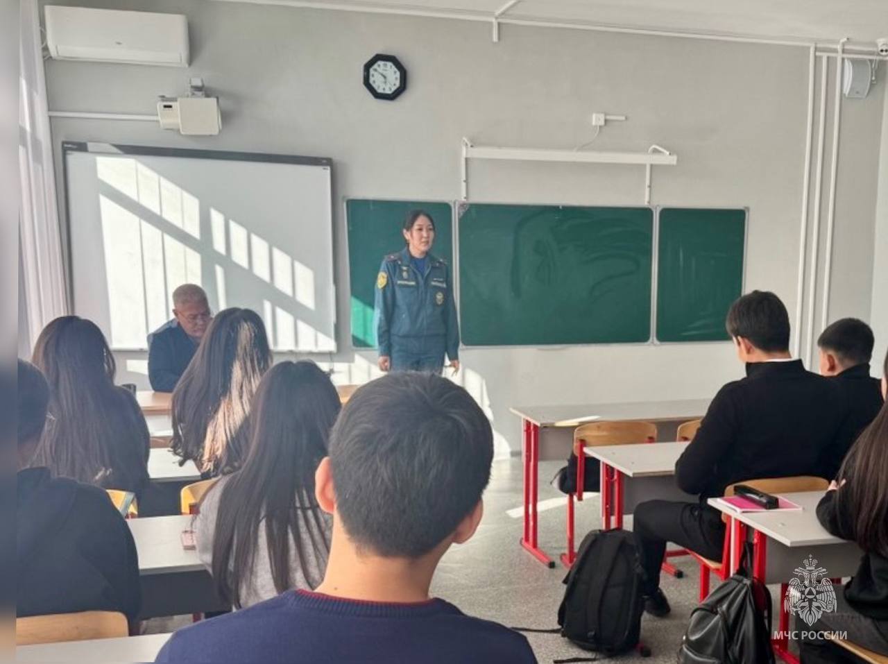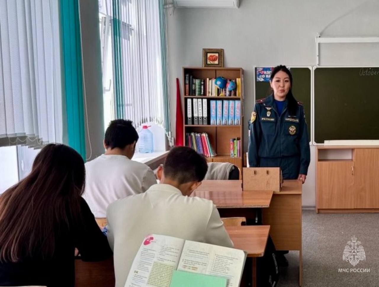 Инспекторы надзорной деятельности и профилактической работы по Яшкульскому и Юстинскому районам провели урок пожарной безопасности с учащимися 10-11 классов Яшкульской школы имени гвардии майора С.В. Санчирова.
