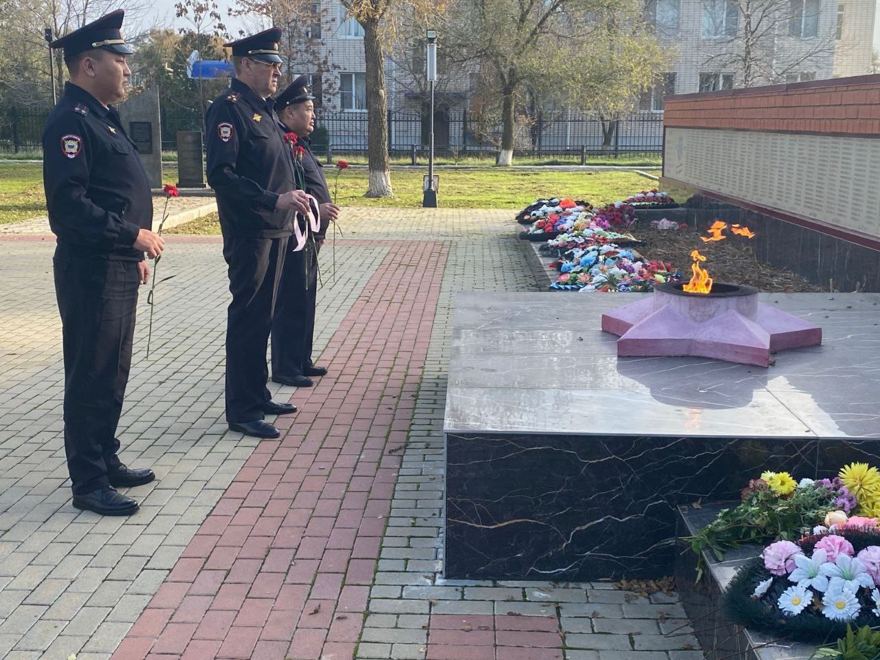 В память о погибших коллегах сотрудники МО МВД России "Приютненский" возложили цветы к мемориалу.
