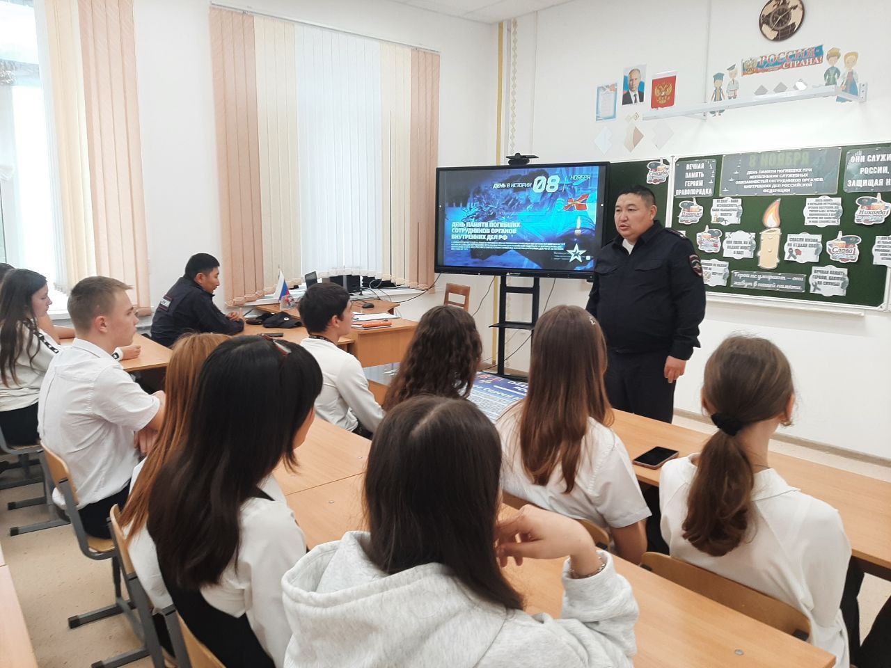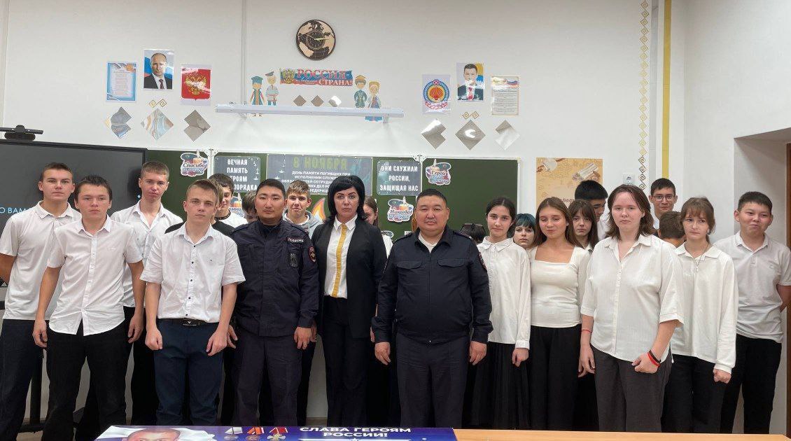 Для учеников девятых классов Приютненского сельского лицея полицейские провели встречу под названием "Подвиг во имя жизни", рассказали о важности памяти, примерах мужества, ответственности и верности служебному долгу сотрудников органов внутренних дел.