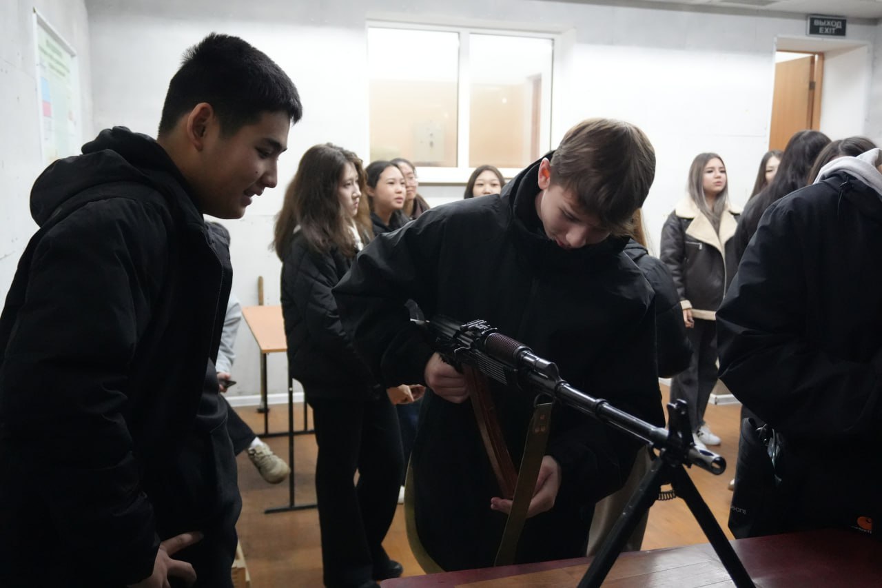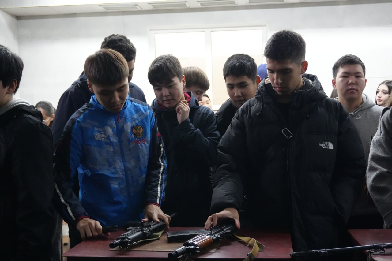 Юноши и девушки могли не только посмотреть на вооружение, но и примерить бронежилеты, подержать в руках щиты.