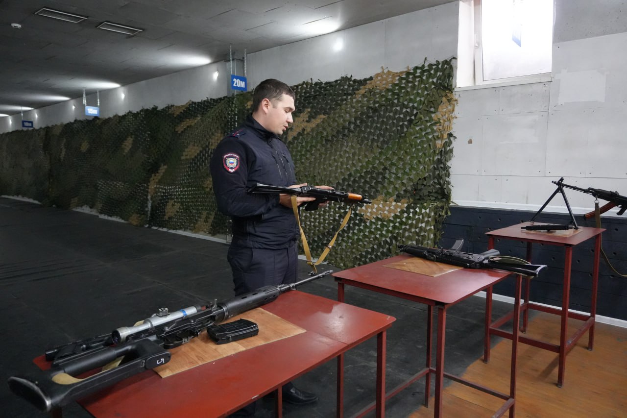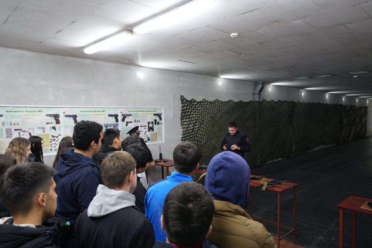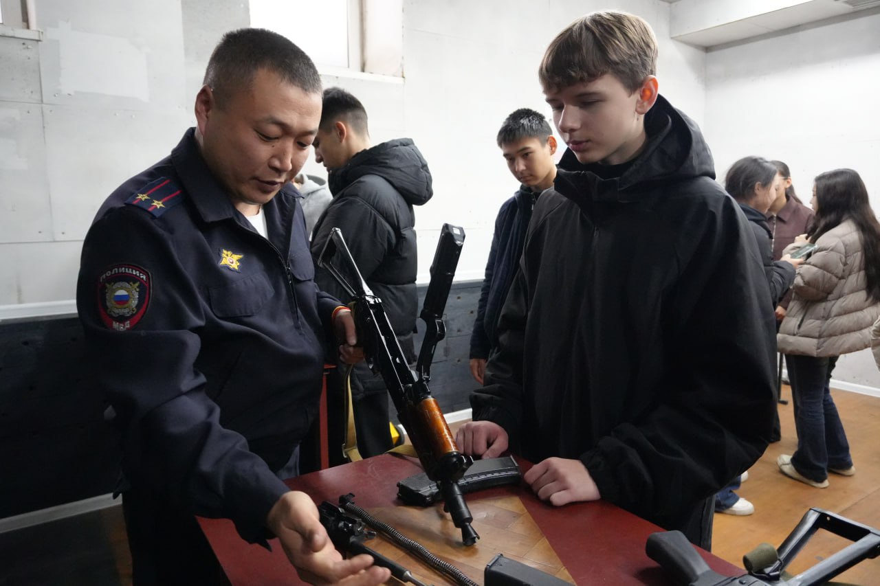 В тире, где сотрудники полиции отрабатывают навыки стрельбы, старший инспектор по особым поручениям отдела профессиональной подготовки Вячеслав Скосарев показал ученикам основные виды вооружения и специальных средств, учебные образцы табельного и автоматического оружия, средства бронезащиты. Ребятам продемонстрировали, как правильно обращаться с оружием, а также рассказали, в каких случаях оно применяется правоохранителями.
