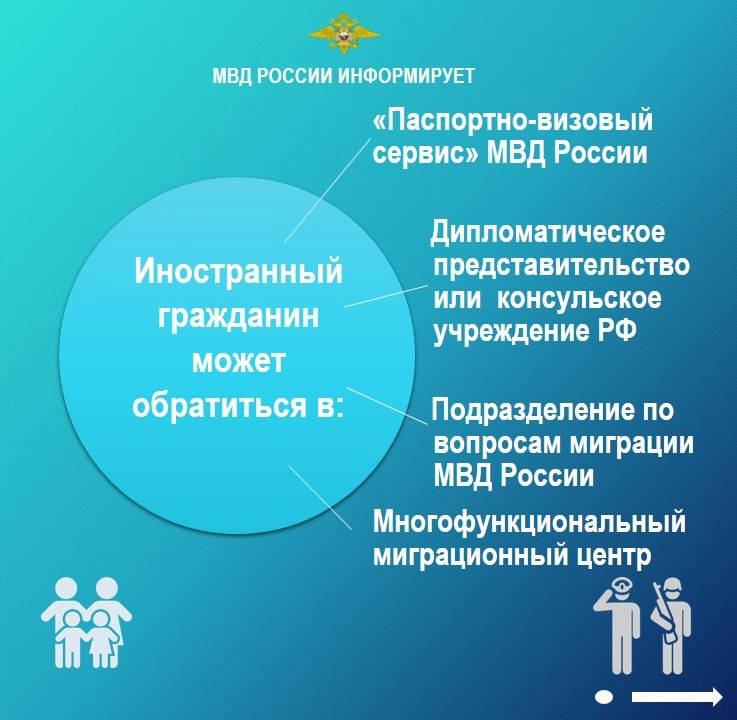 в Российской Федерации - в подразделение по вопросам миграции территориального органа МВД России или ФГУП «Паспортно-визовый сервис» МВД России.