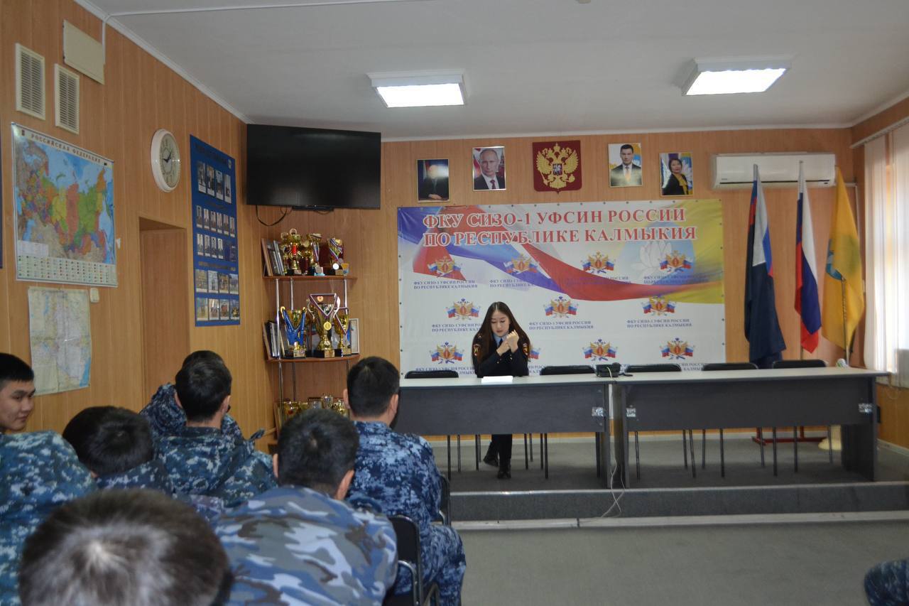В рамках занятий по служебной подготовке с сотрудниками ФКУ СИЗО-1 УФСИН России по Республике Калмыкия встретилась старший инспектор группы пропаганды безопасности дорожного движения Управления МВД России по городу Элисте лейтенант полиции Валерия Чимидова.
