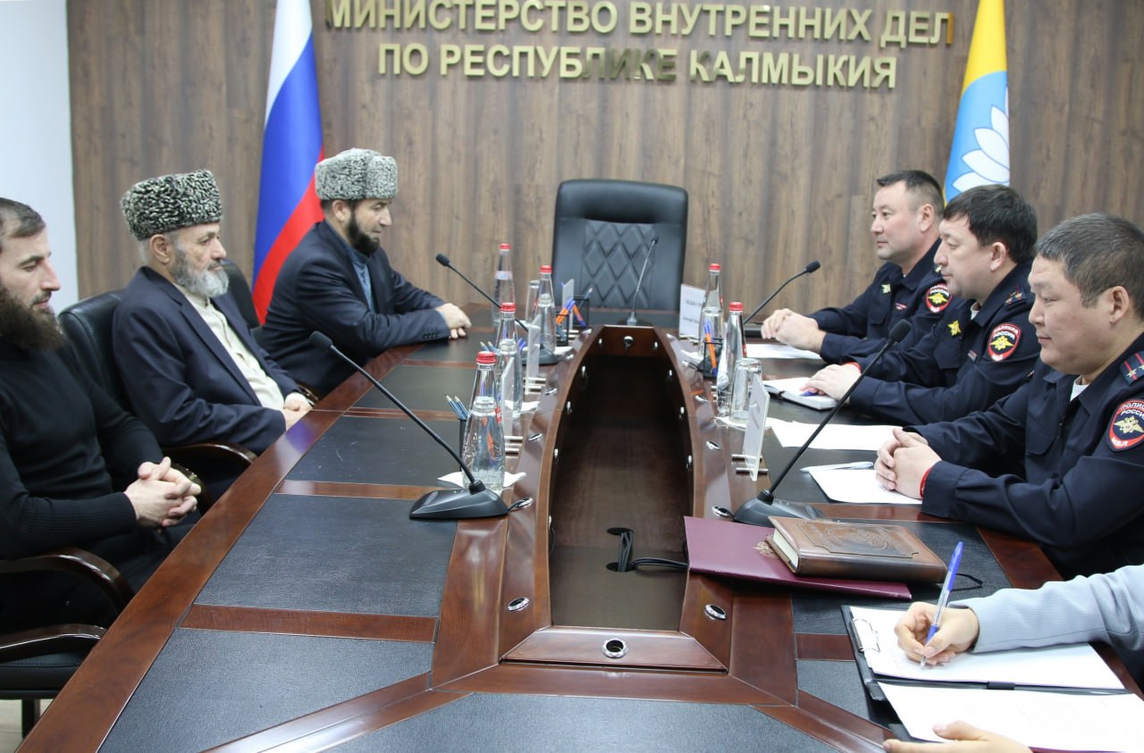 Заместитель министра внутренних дел по Республике Калмыкия – начальник полиции Лиджи-Горяев Дмитрий Николаевич и председатель-муфтий Централизованной религиозной организации «Духовное управление мусульман Республики Калмыкия» Каралаев Солтанахмед Гаджиевич провели рабочую встречу.