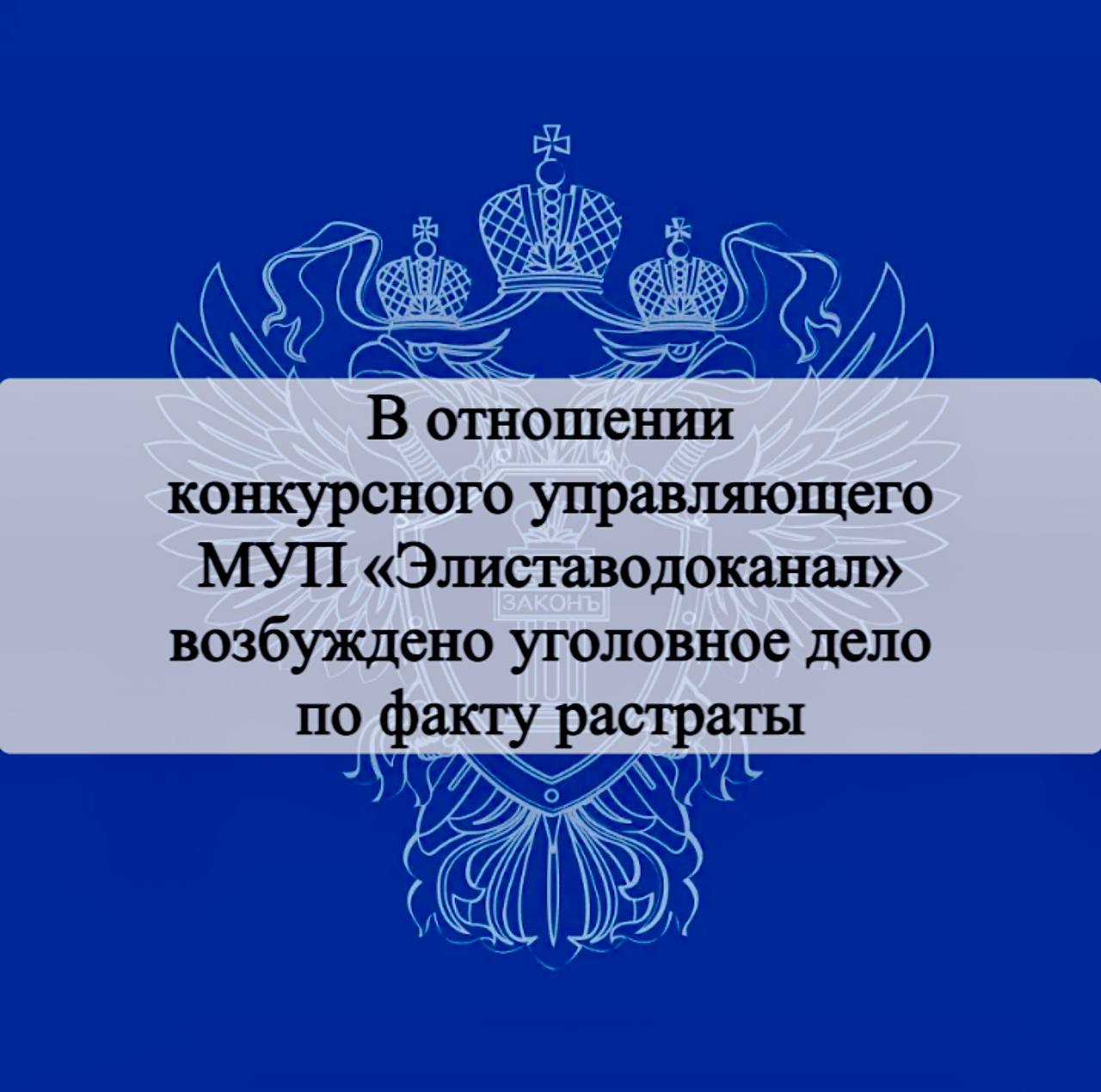 Прокуратурой Республики Калмыкия проведена проверка исполнения законодательства о противодействии коррупции в МУП «Элиставодоканал», в ходе которой выявлен факт растраты денежных средств, вверенных конкурсному управляющему предприятия.