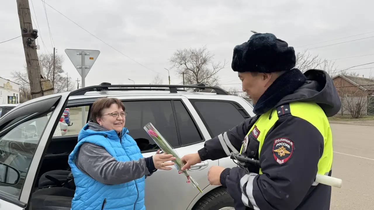 От Лагани до Малых Дербет, от Городовиковска до Цаган Амана — во всех районах степного региона дорожные полицейские на время сменили строгий контроль на праздничную миссию. Вместо привычного требования предъявить документы, инспекторы ДПС встречали женщин-водителей улыбками и букетами весенних цветов.