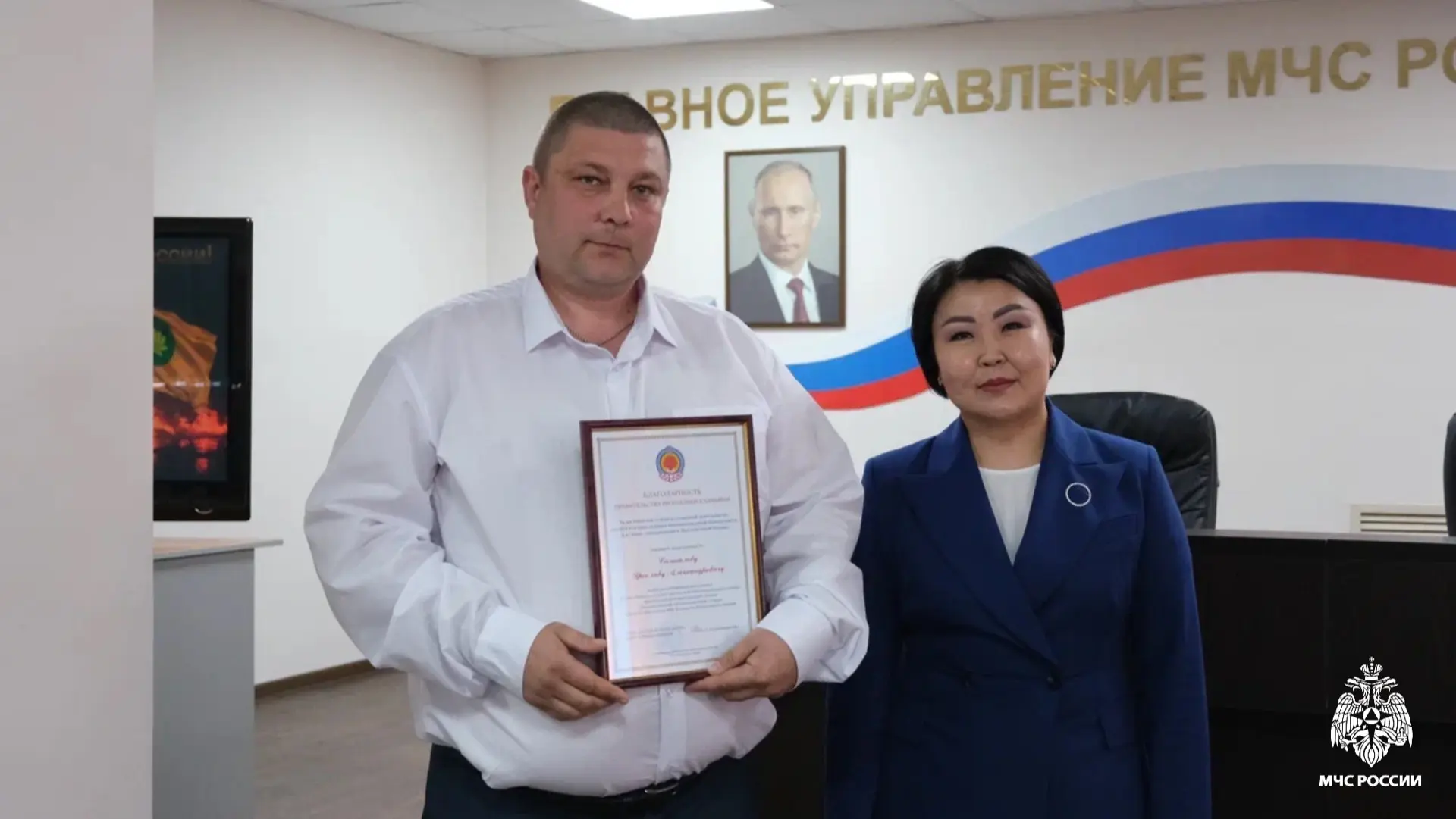 В торжественной обстановке начальник калмыцкого Главка наградил Председателя Правительства республики медалью МЧС России «За содружество во имя спасения». Этой высокой награды Гиляна Герасимовна удостоена за заслуги, проявленные в деле развития и обеспечения успешного функционирования РСЧС и безупречное служение делу гражданской обороны.