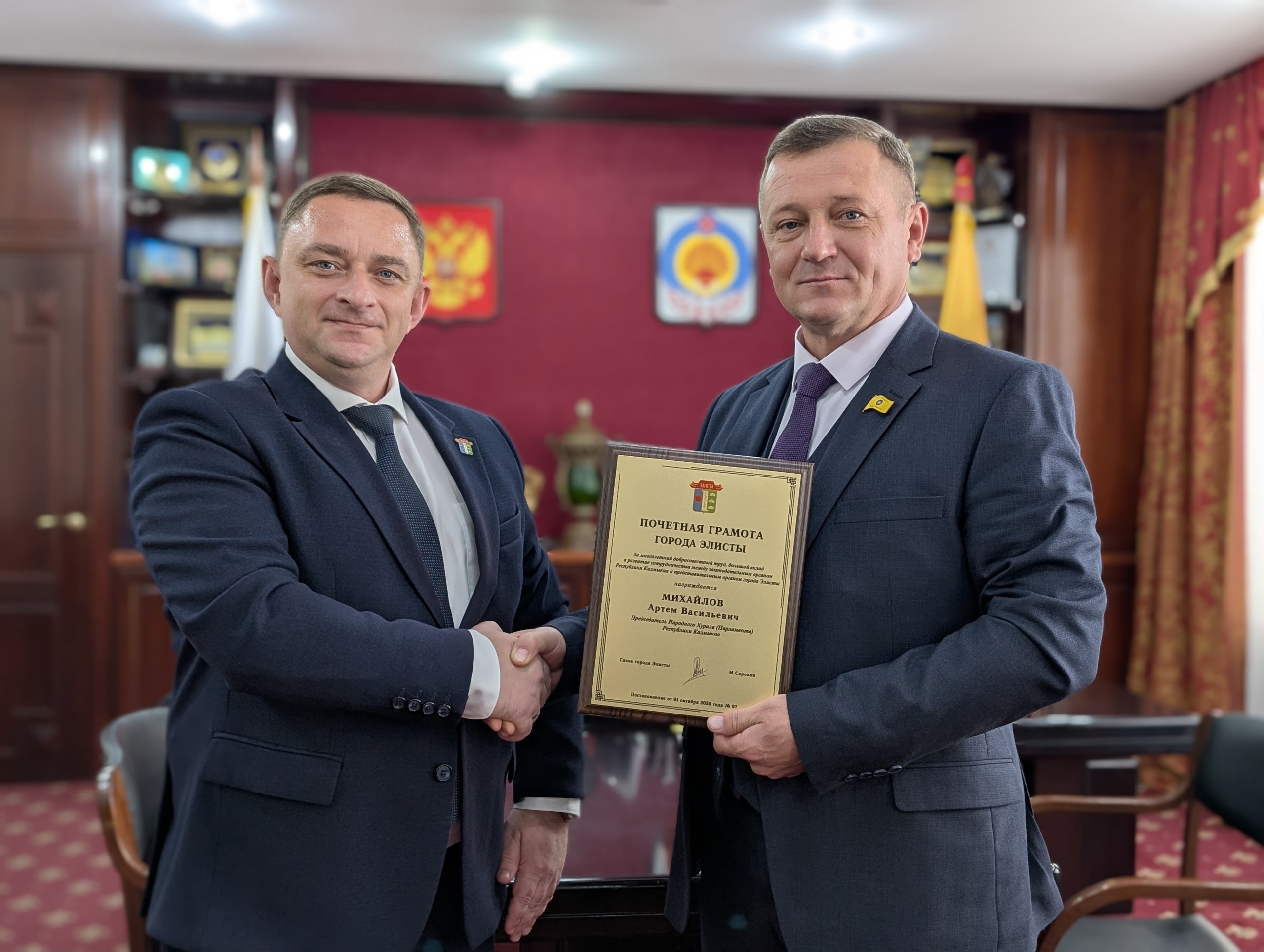 Поздравляю Вас с юбилеем! Вы вносите огромный вклад в расширение и укрепление продуктивного сотрудничества между Народным Хуралом и Элистинским городским Собранием. При Вашем непосредственном участии взаимодействие между законодательными органами республики и города вышло на новый уровень – происходит обмен опытом, взаимная работа по реализации национальных проектов, государственных и муниципальных программ.