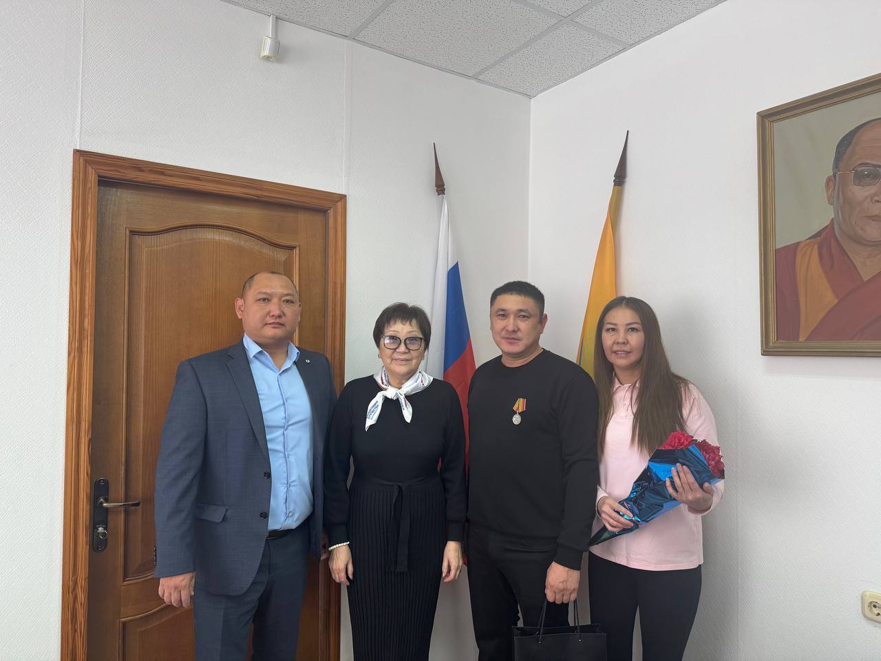 Торжественная церемония награждения состоялась при участии врио главы Кетченеровского района Санала Азотова. Государственную награду Мерген Борисович получил за проявленные мужество и самоотверженность при исполнении воинского долга. Ранее он был удостоен медали Жукова.