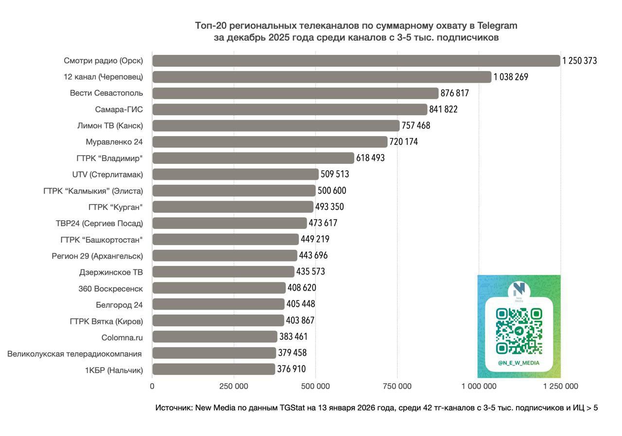Рейтинг был составлен специализированным Telegram-каналом New Media на основе данных аналитического сервиса TGStat.