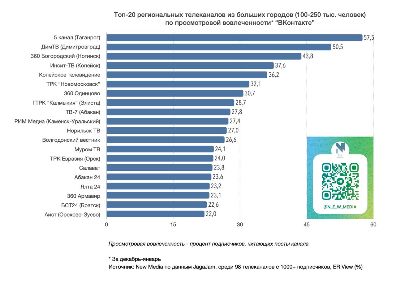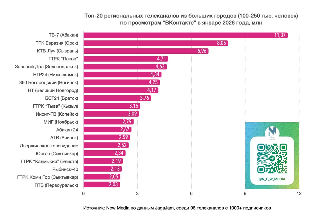 Аккаунт ГТРК Калмыкия в социальной сети ВКонтакте вошёл в топ-20 рейтинга региональных телеканалов России для городов с населением от 100 до 250 тысяч человек.