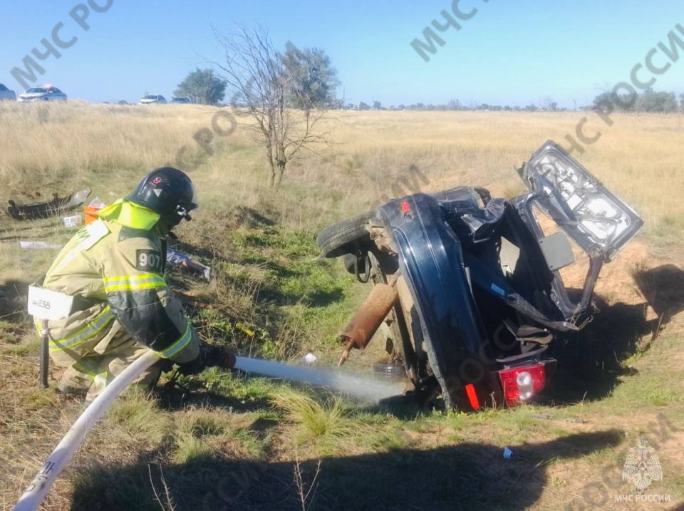 Сегодня днем на 365-м километре федеральной трассы Р-216 в районе поселка Ульдючины Приютненского района автомобиль опрокинулся в кювет. На место происшествия незамедлительно выехали расчеты пожарно-спасательной части № 9.Спасатели отключили...