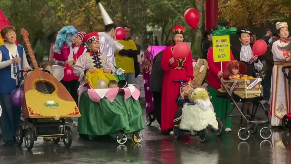Несмотря на переменчивость погоды, семьи-участники проявили всю свою изобретательность, украшая «транспорт» своих малышей#РИАКалмыкия / #РеспубликаКалмыкия