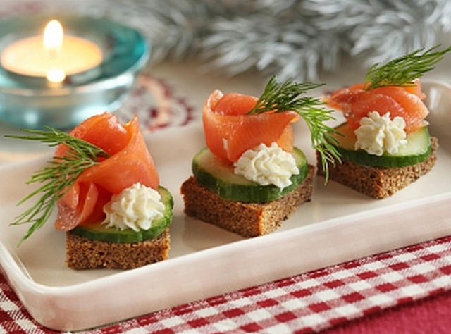 - Приготовление: Нарезать хлеб, поджарить по желанию. Намазать каждую ломтик сливочным сыром, выложить кусочек лосося, украсить огурцом и укропом. Подавать на красивом блюде с лимонными дольками.
