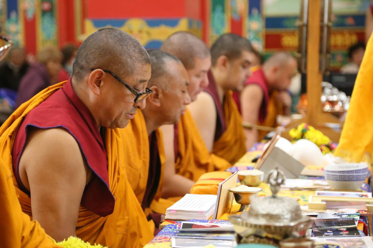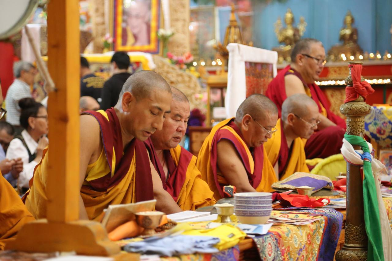 В течение двух сессий монахи читали молитвы, совершали подношения и просили благословения на счастье и благополучие всех живых существ.