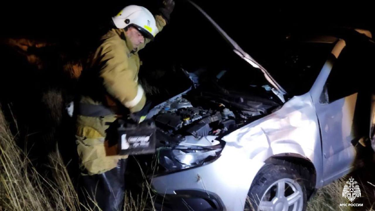 Спасатели выехали на место аварии близ посёлка Манычский, где легковой автомобиль съехал в кювет. Для предотвращения возгорания они обесточили транспортное средство, отключив аккумулятор.