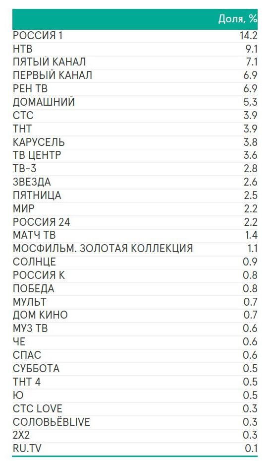 Источник: Mediascope TV Index, Россия, население 4+, просмотр ТВ дома и на даче