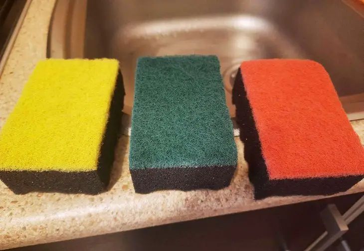 Губки для посуды становятся рассадниками всевозможных бактерий. После мыться посуды губки необходимо мыть с чистящим средством и менять каждые 14 дней.
