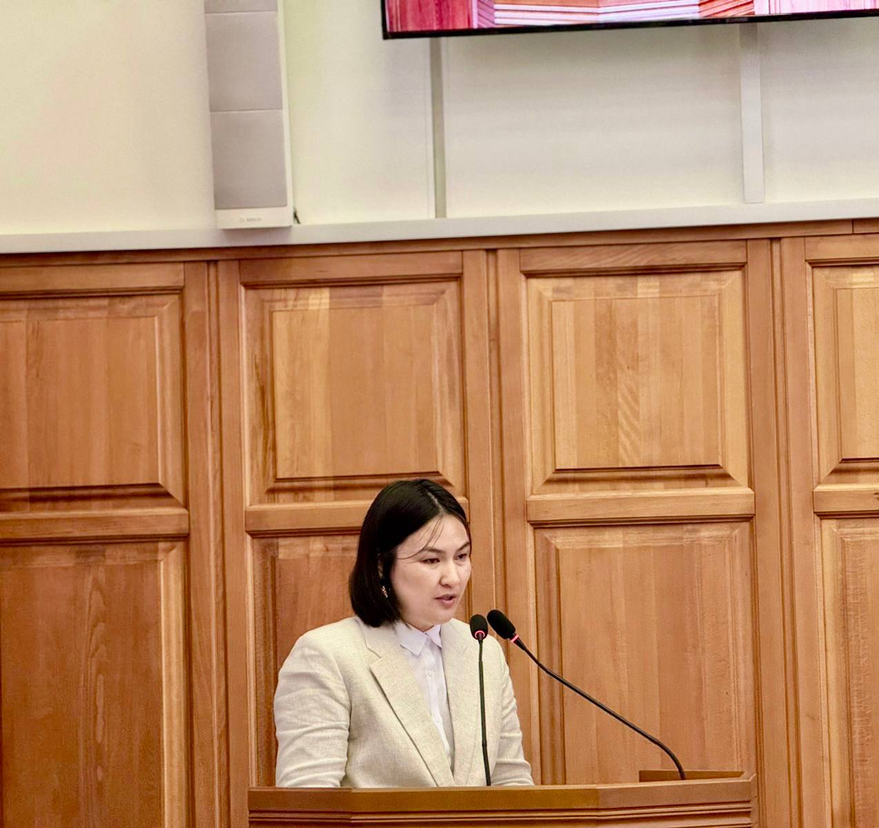 Докладчик - заместитель министра социального развития, труда и занятости Республики Калмыкия Екатерина Потолдыкова.