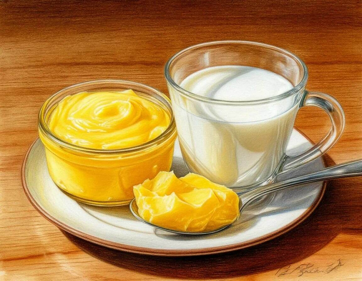 Попробуйте добавить ложку гхи в свое вечернее молоко и убедитесь в положительном эффекте!