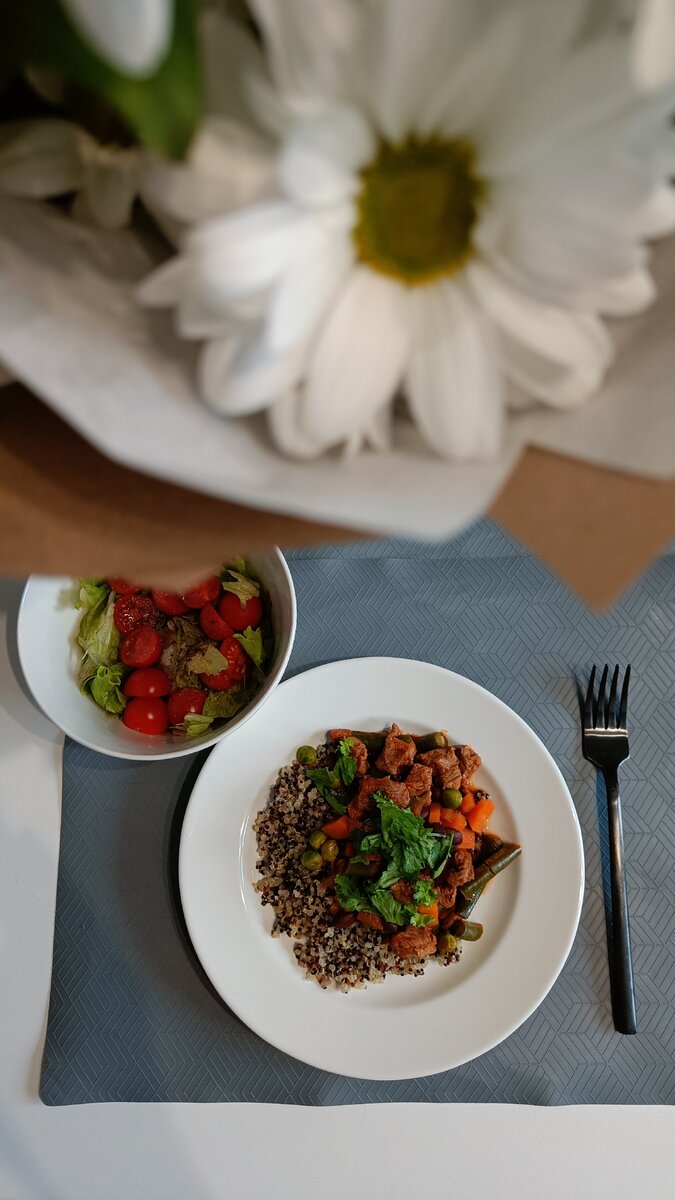 Когда мясо почти готово, в него добавляют замороженные горошек и два вида фасоли. Продукты быстро готовятся, и всего через несколько минут блюдо будет готово к подаче. Стейк из говядины можно преподнести с гарниром из киноа или же обойтись без него, если это ужин. Такой подход идеально вписывается в современную кухню, где важна как скорость приготовления, так и вкус. Использование замороженных овощей и фасоли делает процесс ещё более удобным, позволяя добавить немного здоровья и сытности каждому приему пищи.