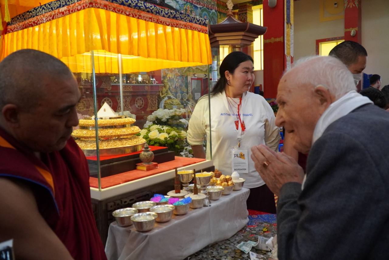 Ветеран Великой Отечественной войны Петр Леонтьевич Леонтьев поклонился священным реликвиям Будды Шакьямуни.