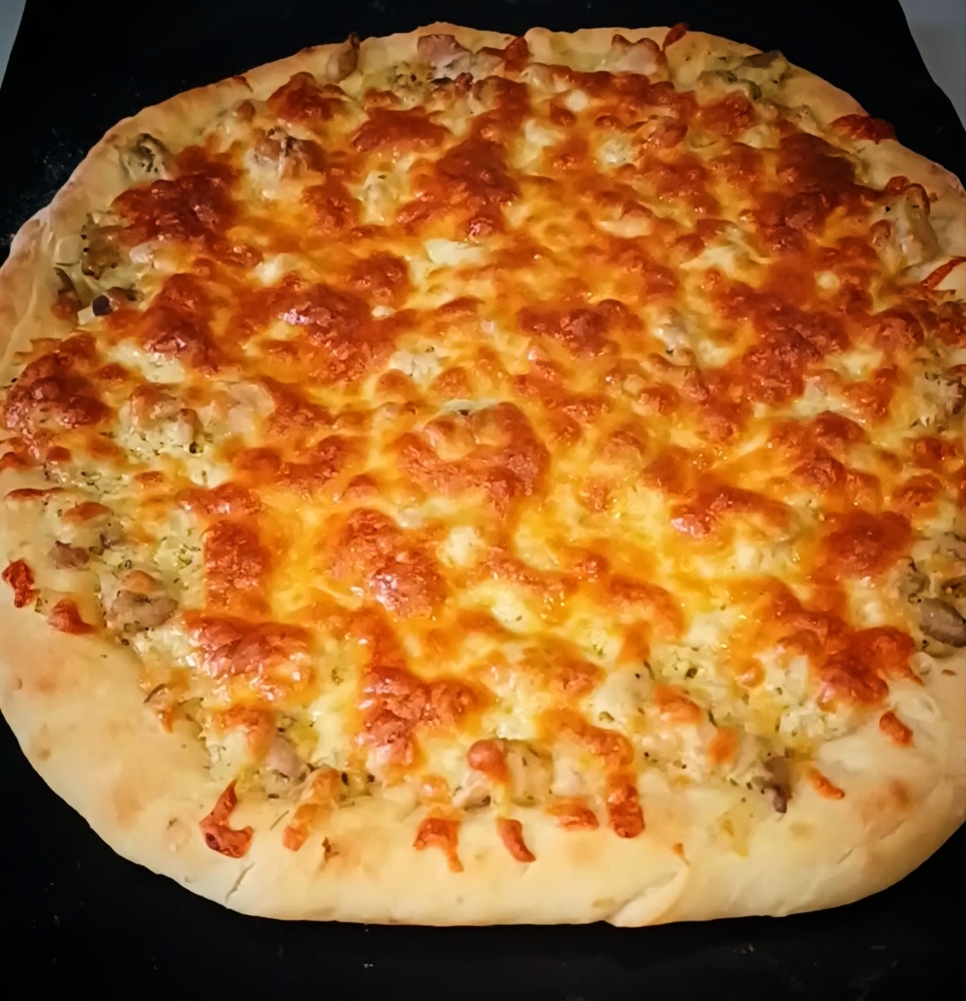 Тесто станет мягким и податливым. На слегка присыпанной мукой поверхности раскатайте его в круг и перенесите на противень, предварительно выстланный пергаментом. Выложите начинку и обильно посыпьте тёртым сыром. Это добавит тягучести и сделает корочку особенно аппетитной.