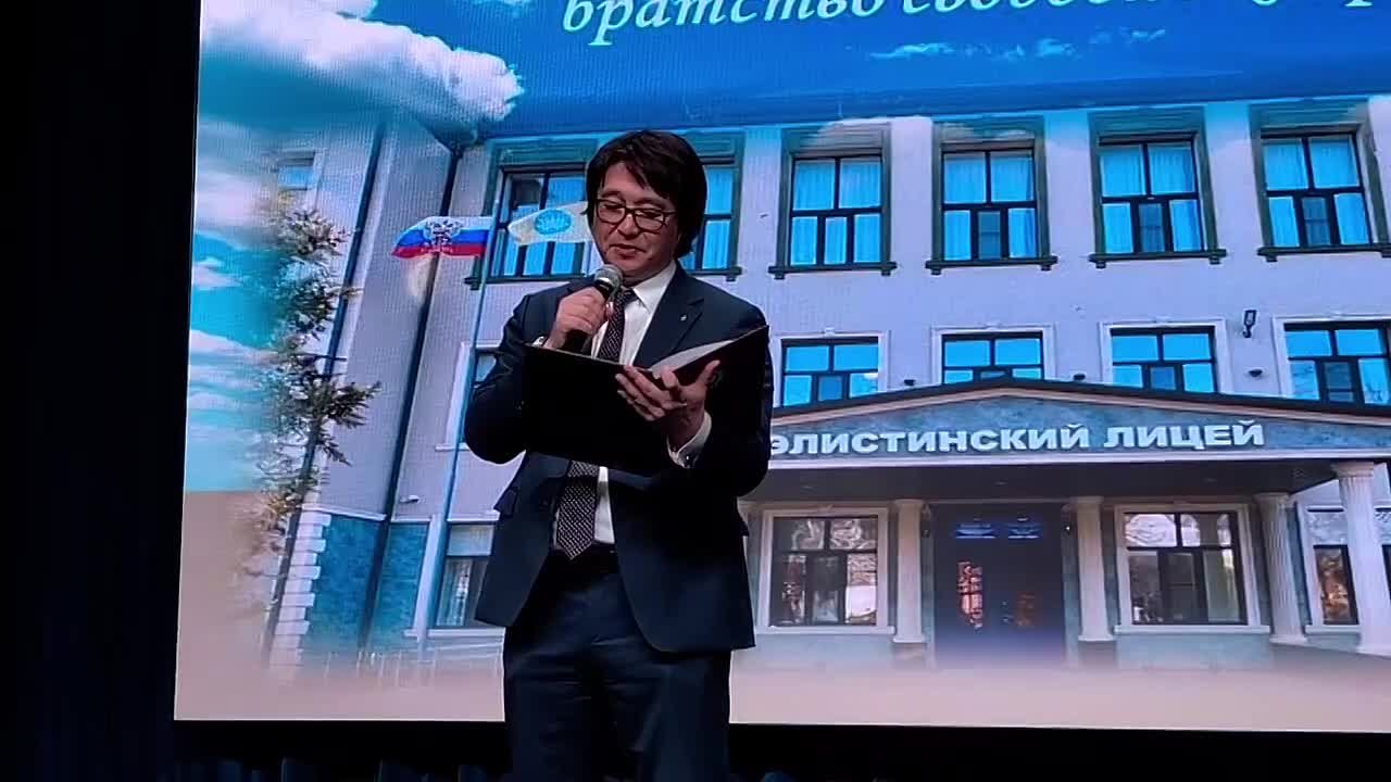 Приветственный адрес от Главы Республики Калмыкия Бату Хасикова Элистинскому лицею зачитал Заместитель Председателя Правительства Республики Калмыкия Очир Джамбинов.