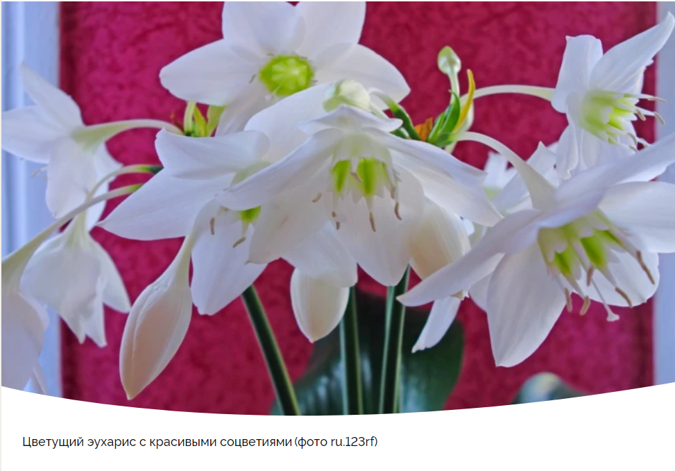 Эухарис насчитывает до 20 видов, но в домашних условиях чаще всего встречаются: