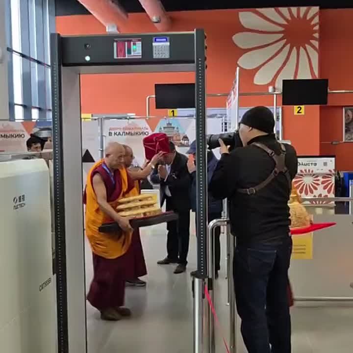 Реликвия Будды Шакьямуни прибыла в аэропорт Элисты, откуда специальным бортом отправится в Индию.