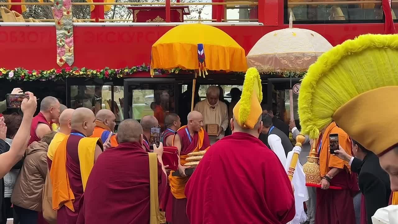 На специальном автобусе реликвии Будды Шакьямуни уже прибыли в аэропорт Элисты