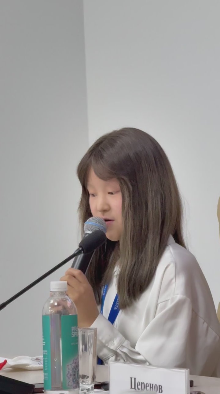 На пресс-конференции по итогам III Международного буддийского форума с трогательными и искренними словами выступила волонтер, ученица 11 класса Элистинской многопрофильной гимназии Цагана Салкина.