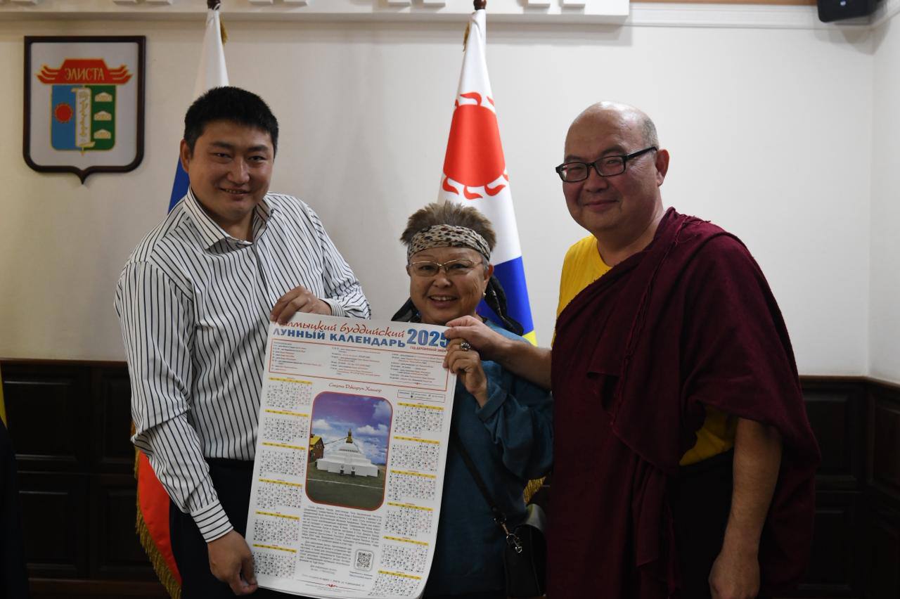 Особенно приятно во время приема было получить в дар от настоятеля Ики-Бурульского хурула, ламы Бадмы Шераба священных буддийских символов, которые, по словам учителя, помогут Администрации города Элисты в непростой работе на благо всех наших горожан