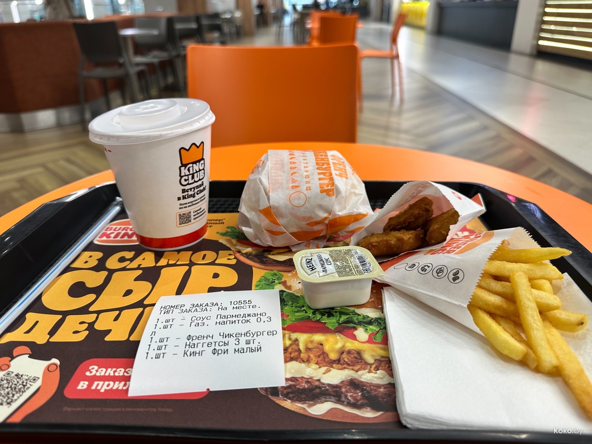 В Бургер Кинг стартовала новая интересная акция — суперкупон, который порадует всех любителей быстрой еды. За символические 5,50 рублей клиенты получат полноценный набор, включающий в себя: Френч Чикенбургер, маленькую порцию картошки фри, три куриных наггетса или три хрустящих луковых кольца, а также соус на выбор и стакан газировки любого типа, сообщает Дзен-канал "KOKO.BY".