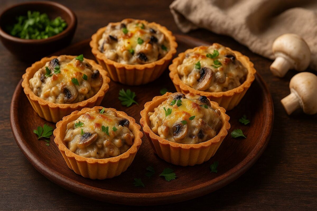 Тарталетки — это поистине кулинарная магия. Они могут привести в восторг любой начинкой: от свежих салатов до утончённых паштетов. Но в сочетании с жюльеном эти корзинки раскрываются по-особенному, создавая идеальный тандем хруста и нежности. Маленькая порция внутри несет в себе целый букет вкусов: сочное куриное мясо, ароматные грибы и насыщенные сливки. Это блюдо стало бы настоящей звездой как на семейном ужине, так и на праздничном столе.