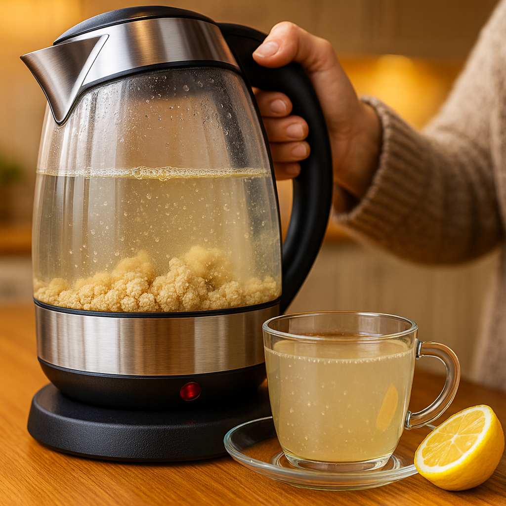 Очистка чайника - Наполните чайник полученным раствором и нагрейте до кипения, а затем дайте постоять 20–30 минут для лучшего эффекта.