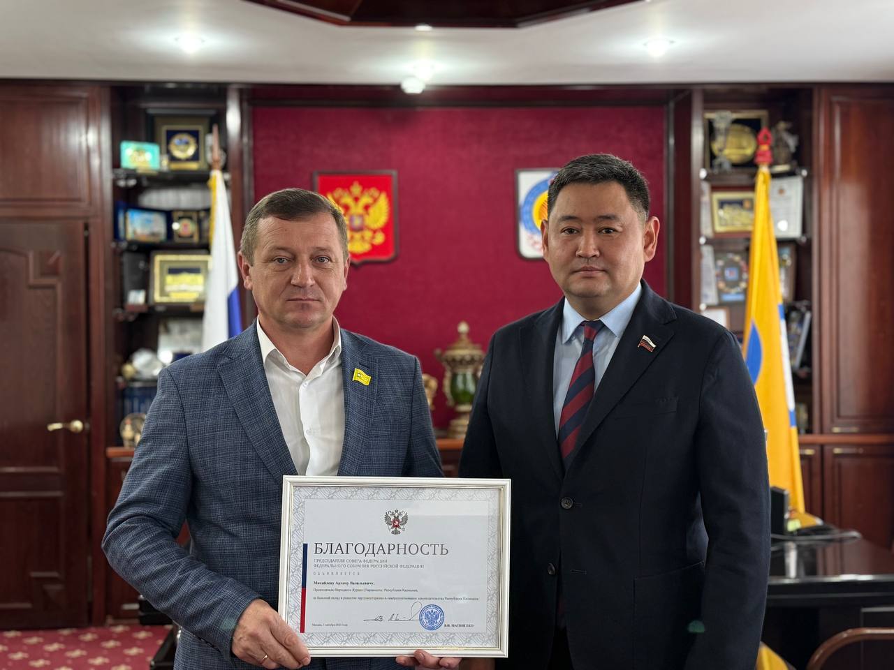 Председатель Народного Хурала (Парламента) Республики Калмыкия был отмечен высокой наградой — Благодарностью Председателя Совета Федерации Федерального Собрания РФ Валентины Ивановны Матвиенко.