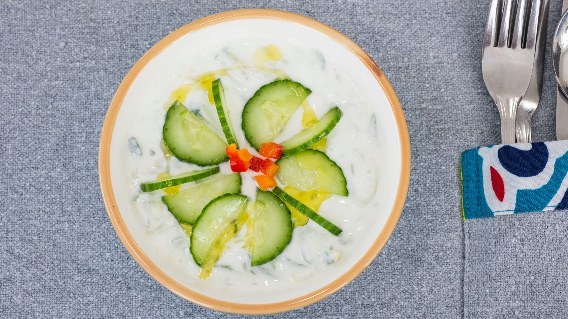 Сначала необходимо измельчить огурец на терке. Получившуюся кашицу нужно откинуть на сито и при помощи лопатки отжать лишнюю влагу. Соедините ингредиент с пропущенным через пресс чесноком, оливковым маслом, солью и греческим йогуртом.