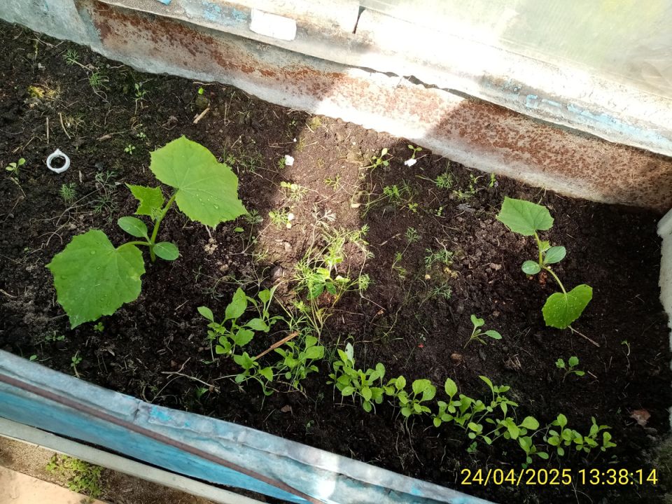 Апрель стал очень теплым, что позволило высадить огурцы в короб сразу после появления настоящего листа. Важно следить за режимом полива, предоставляя растениям достаточное количество влаги, но избегая излишней сырости. Для начала можно поливать огурцы каждые четыре дня.