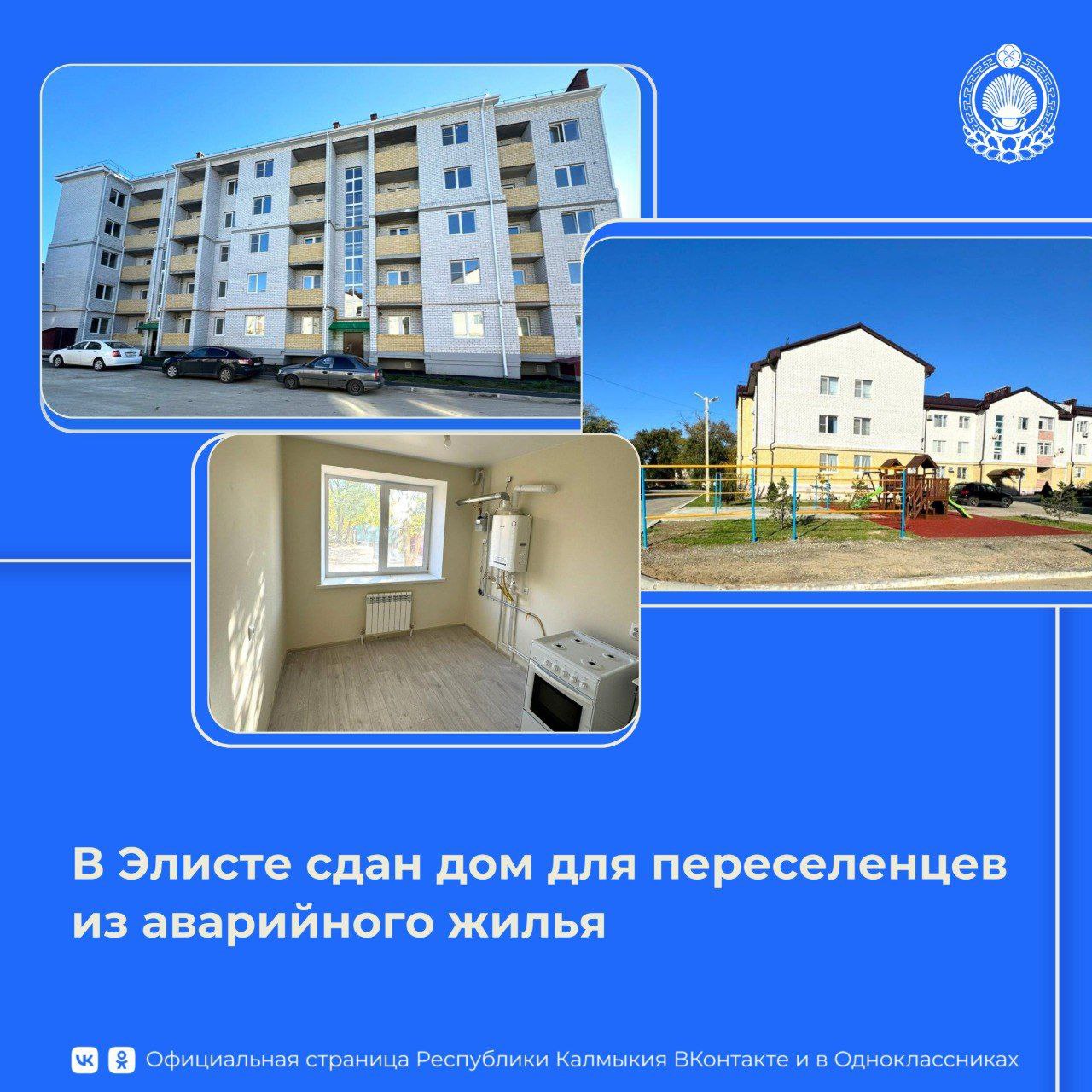 В рамках региональной программы по переселению из аварийного жилья при финансовой поддержке Фонда развития территорий введен в эксплуатацию 44-квартирный дом № 113а по улице Хомутникова в Элисте.