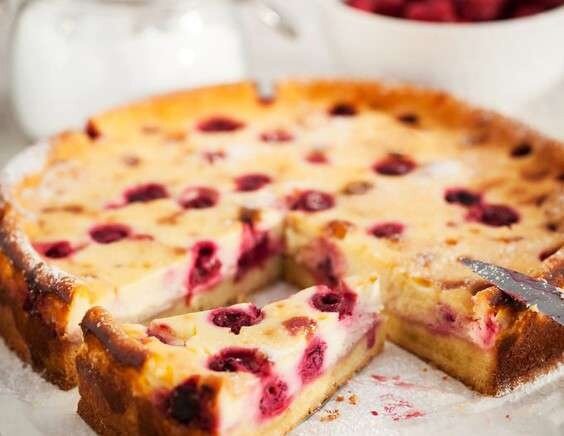 Когда основа немного остынет, укладывают ягоды и заливают их приготовленной смесью.