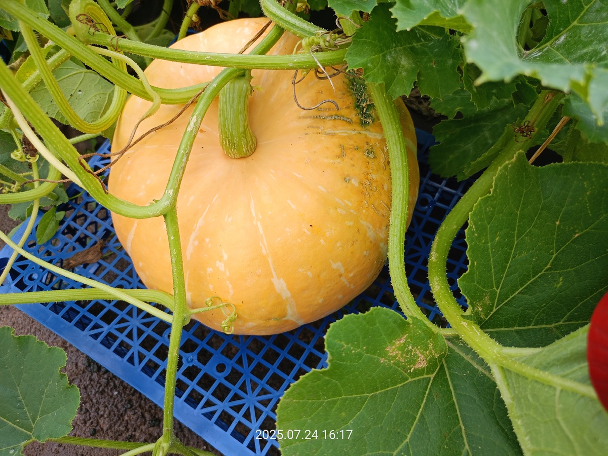Такой подход к уходу за растениями, поддерживая их концентрацию и питание, зачастую приводит к более высоким урожаям и качеству плодов. С появлением сетчатых ящиков синеого цвета, тыквы были аккуратно размещены на них, чтобы обеспечить оптимальные условия для созревания.