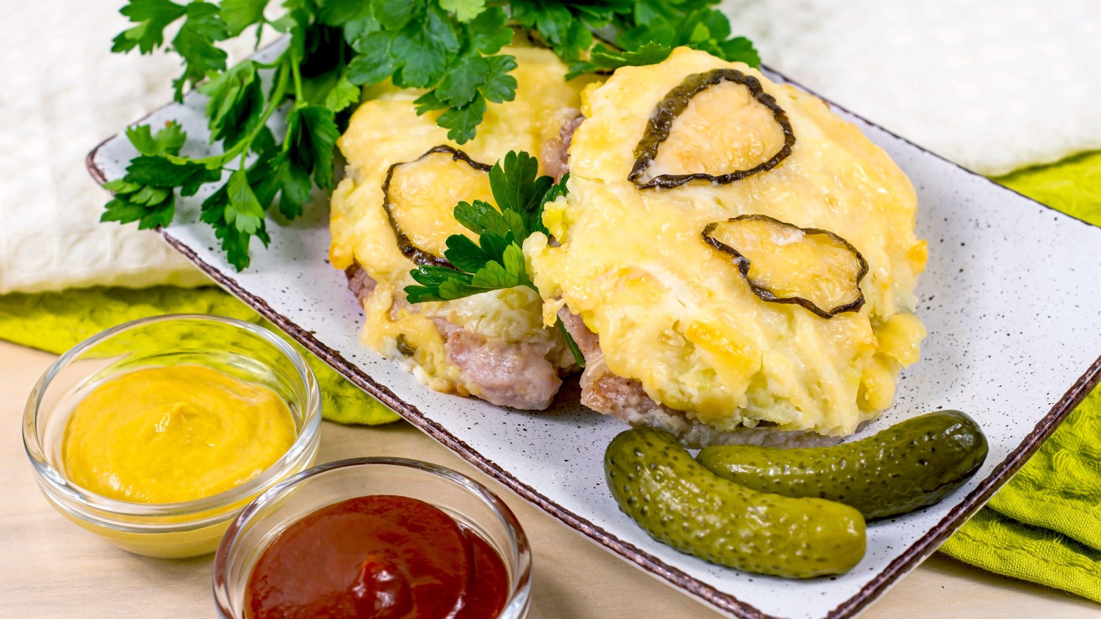 Мясо нарежьте ломтями толщиной около двух сантиметров, заверните в пленку и отбейте. Лук нашинкуйте полукольцами, сыр измельчите на крупной терке. Противень выстелите пергаментом, разместите на нем свинину, смажьте майонезом, посолите, поперчите. Сверху посыпьте луком и положите ананас, а в центр колечка воткните две маслины. Запекайте 40 минут при 180°C, советует портал «Белновости».