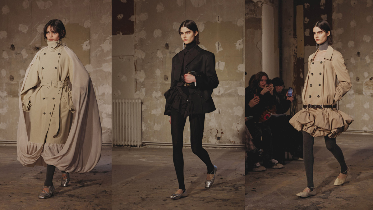 Легкие накидки, обволакивающие фигуру, создают эффект балдахина, а активное использование прямых и мягких линий делает модели игривыми, одновременно элегантными и прогрессивными. Особое внимание привлекают гиперболизированно длинные рукава, которые утонченно подчеркивают плавные формы.